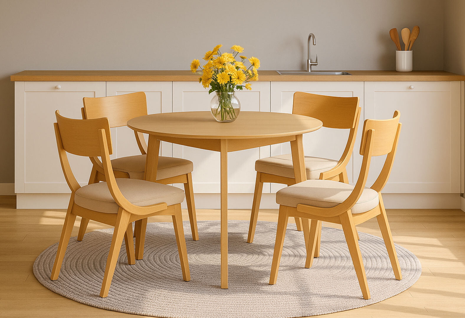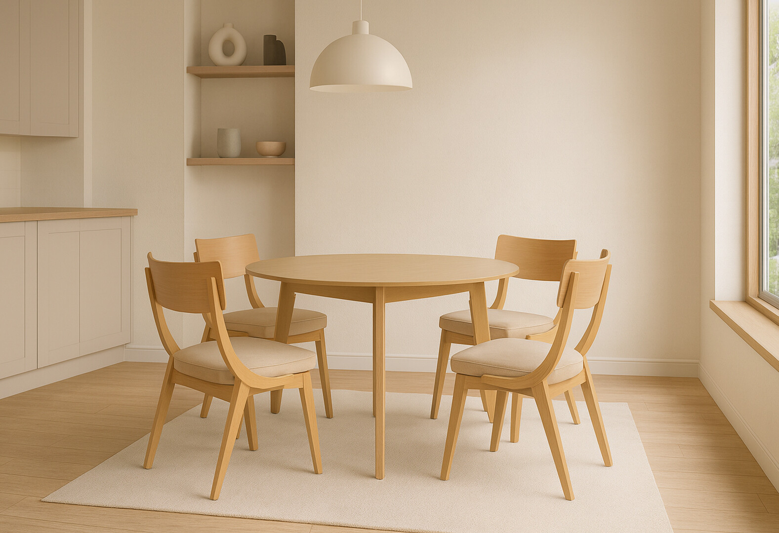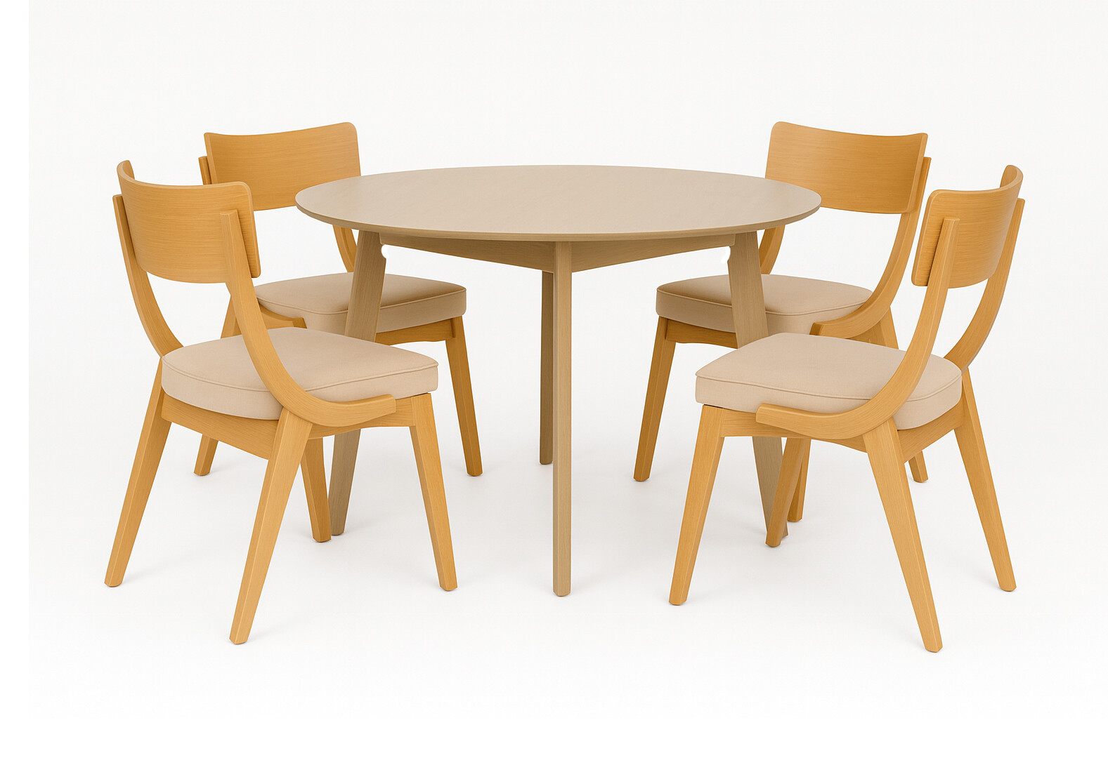 Стол обеденный Марс круглый 100+40 natural, раскладной + стул Диран натуральный/Мустанг крем 4 шт.