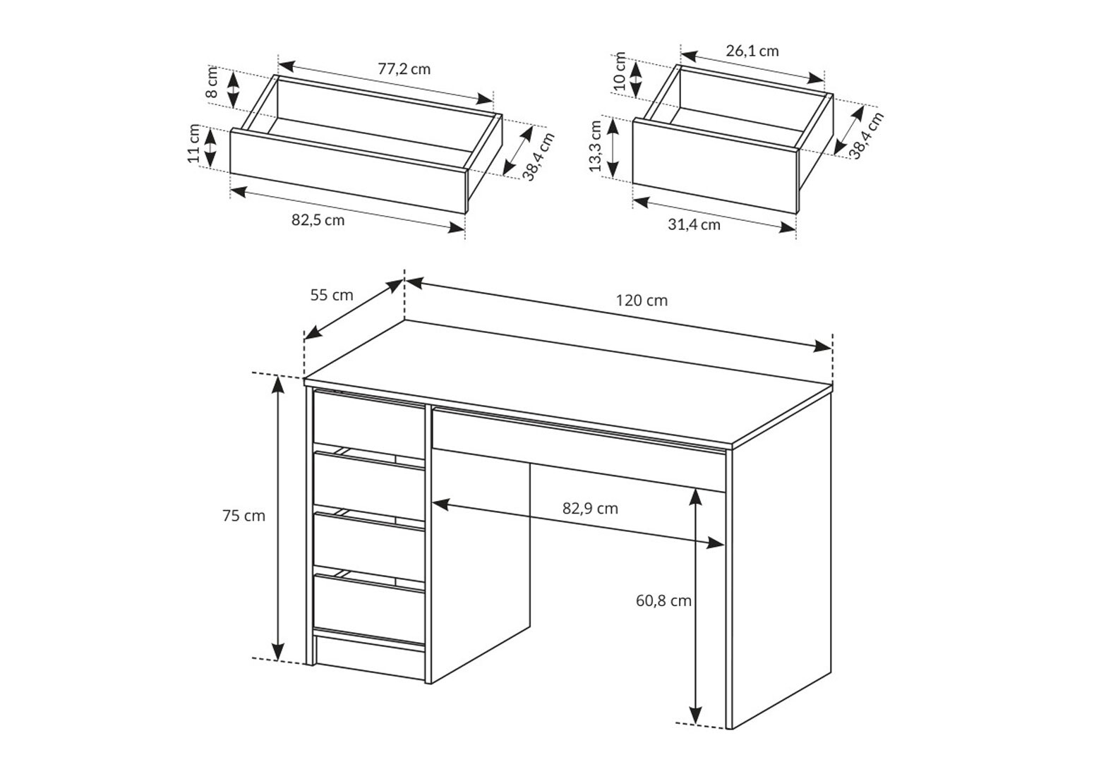 Стол письменный Perfect Home Ада / Ada 120х55 см с 5 ящиками, белый