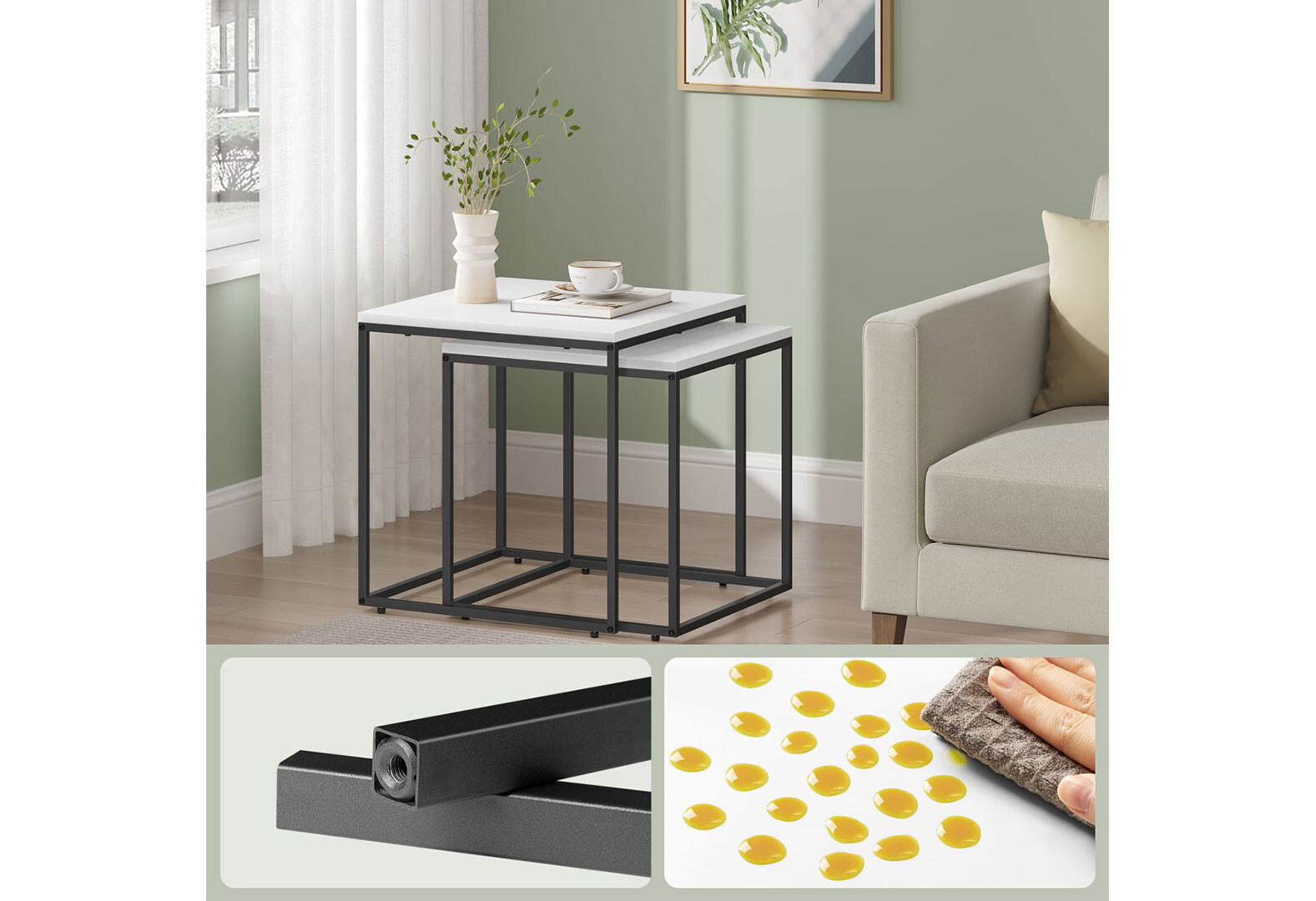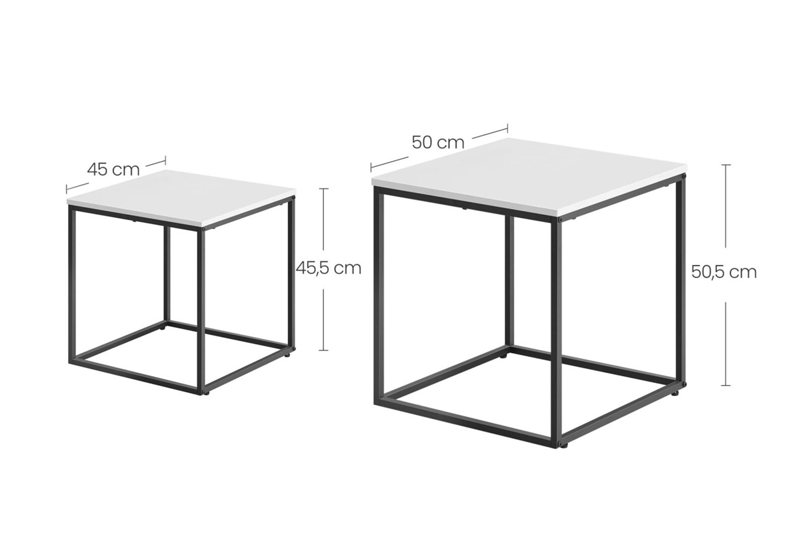 Стол журнальный Креденс Фениче квадратный 2 шт, 50 / 45 см, белый / ножки черные