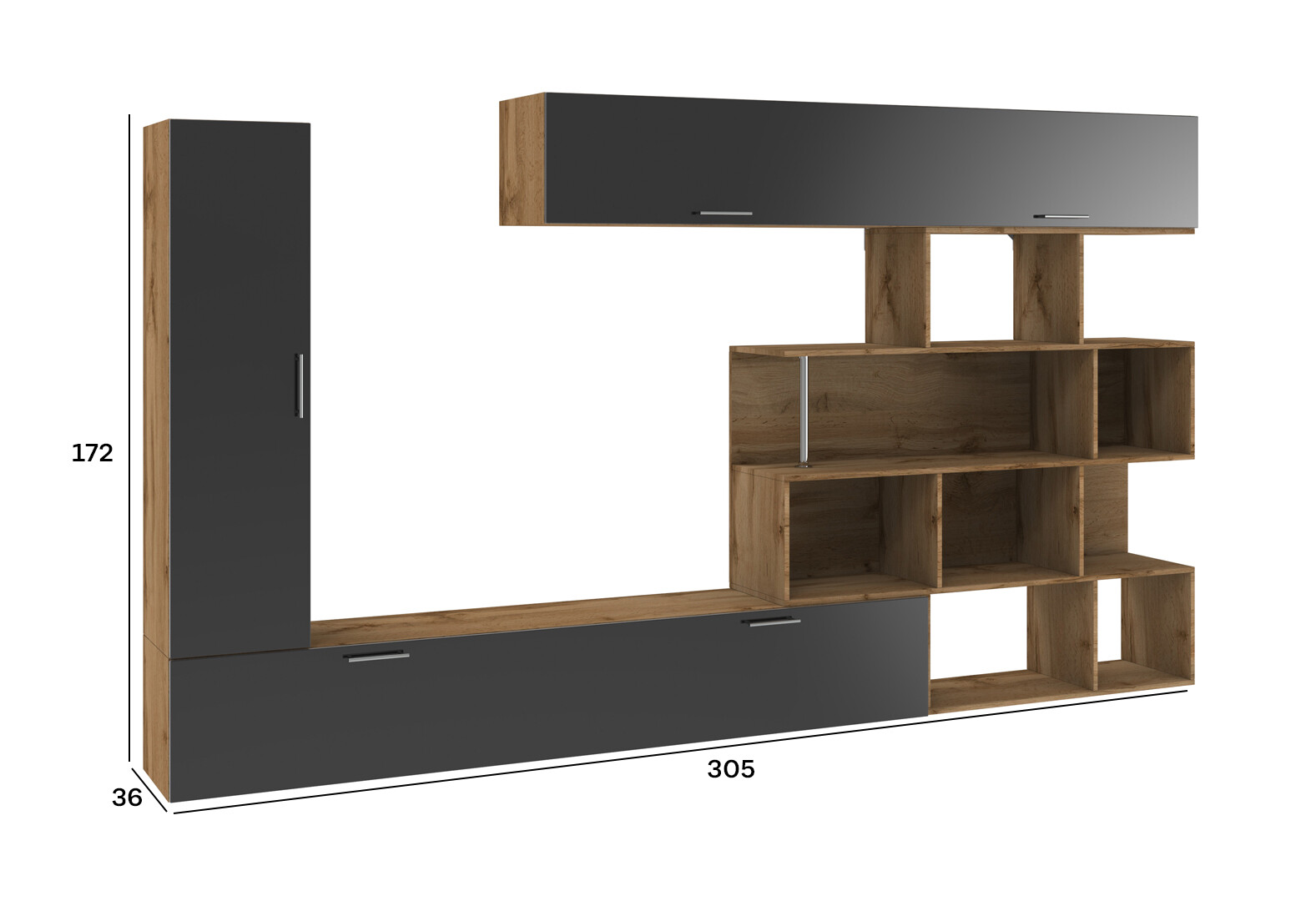 Стенка Киевский стандарт Галатея М 305 см дуб аппалачи / черный глянец