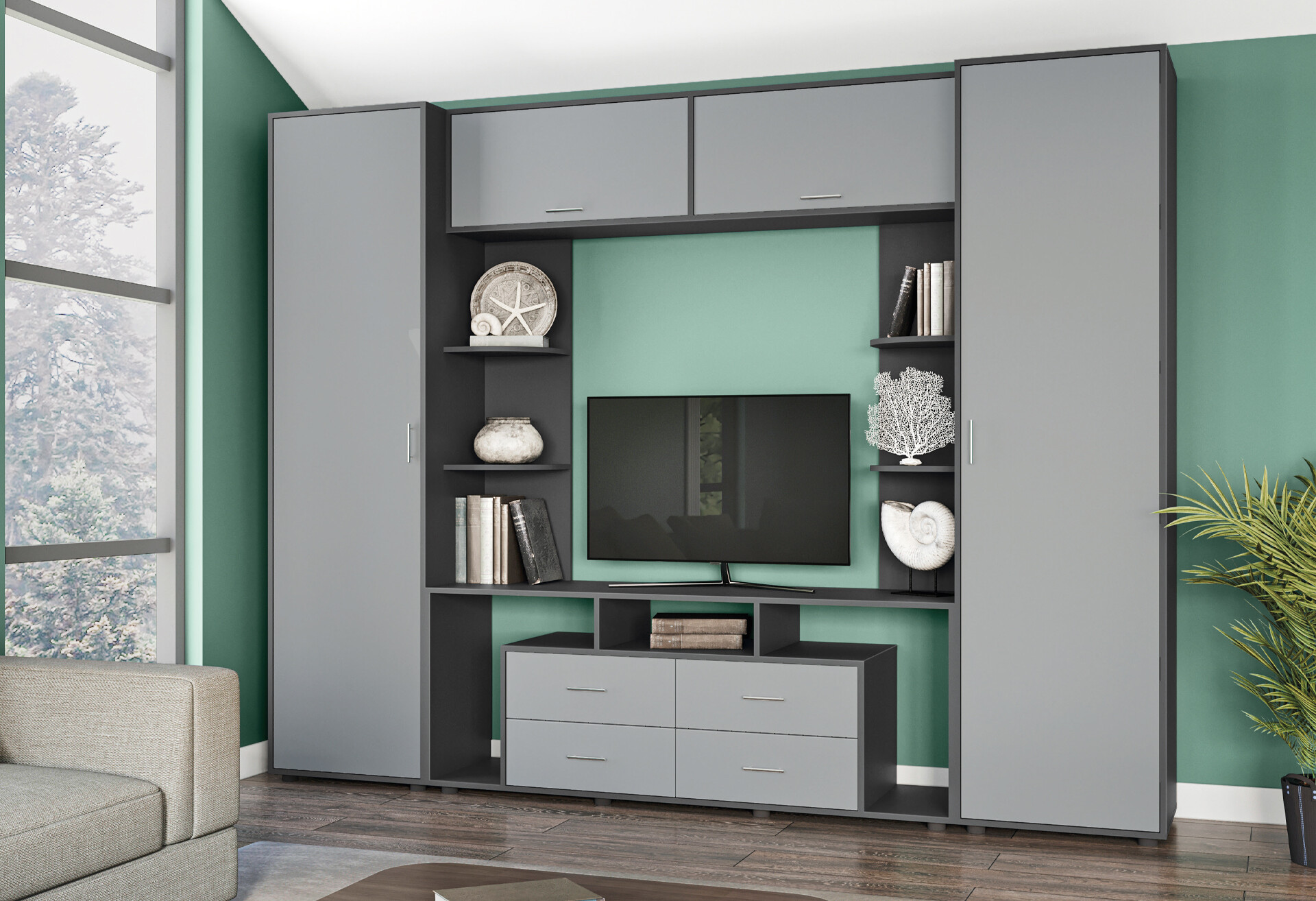 Стенка Киевский стандарт Юта Д 270 см антрацит / серая лава