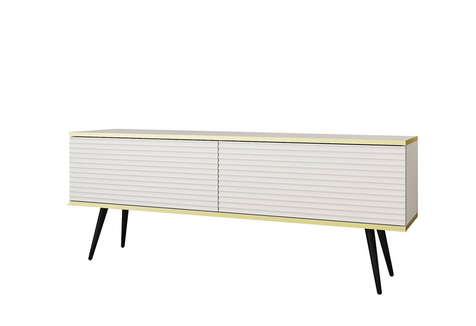 Тумба под ТВ Perfect Home Оро / Oro MDF с 2 дверками 135 см, белый, черные ножки