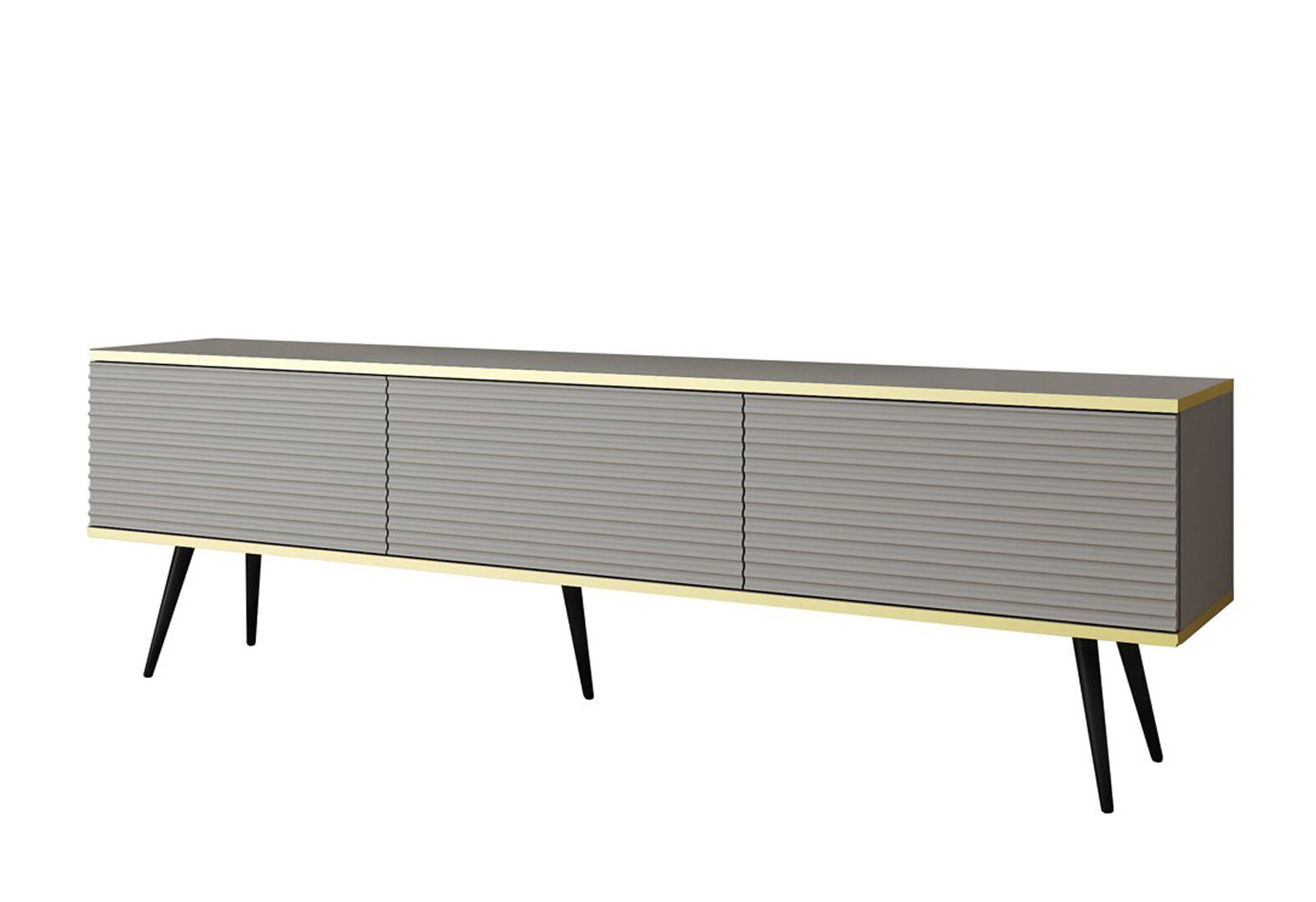 Тумба под ТВ Perfect Home Оро / Oro MDF с 3 дверками 175 см, серый, черные ножки