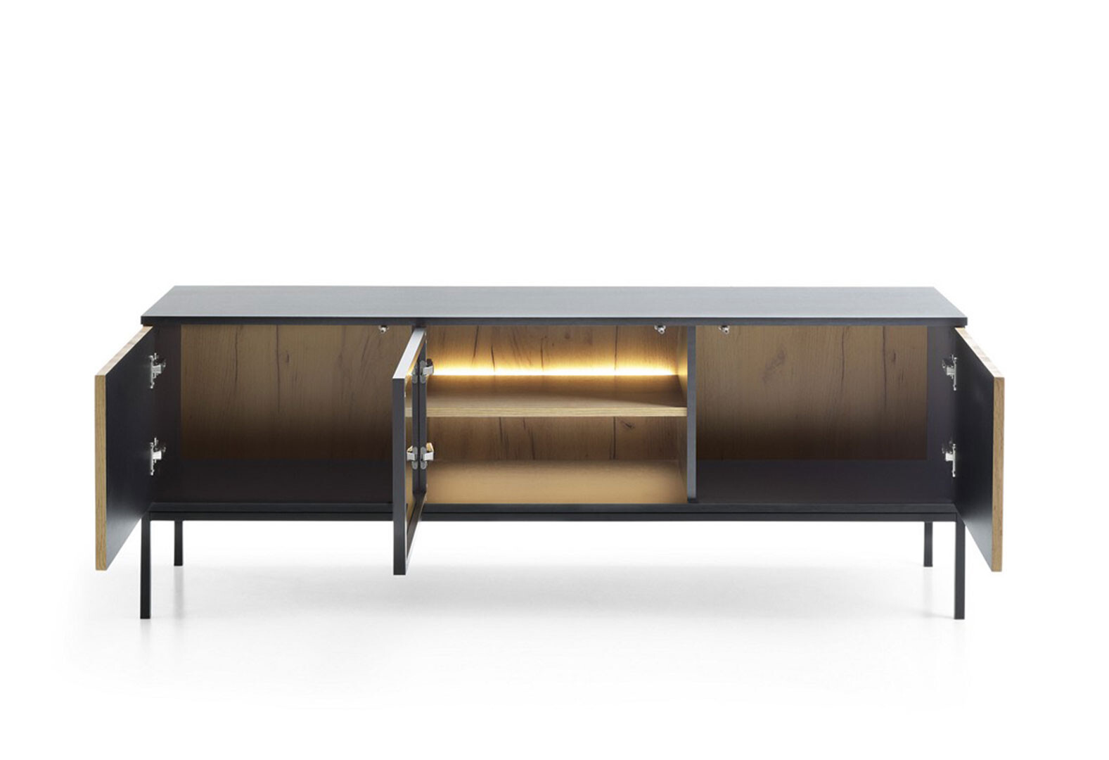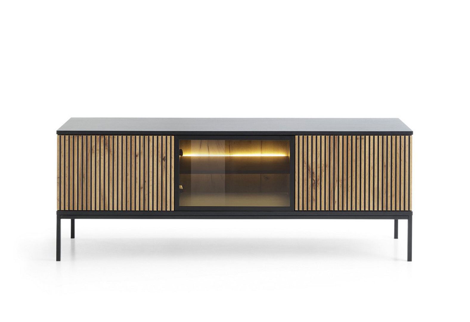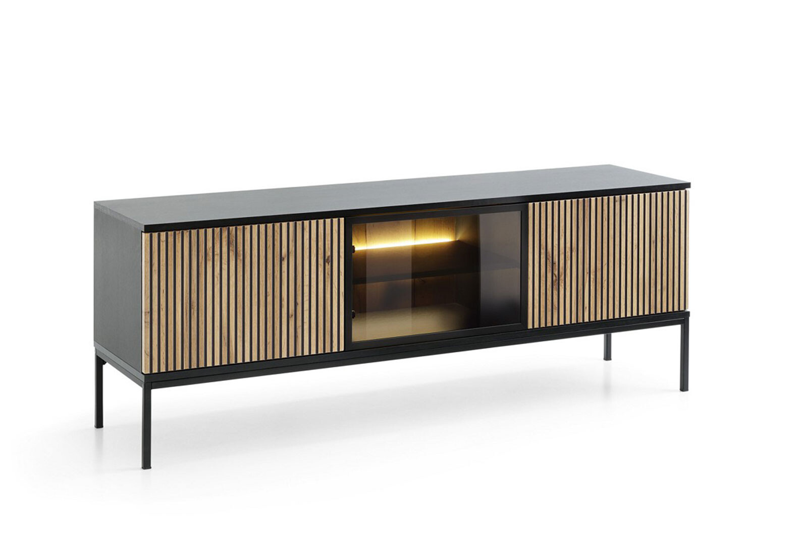 Тумба под ТВ с подсветкой Perfect Home Сенто / Sento RTV154 и витриной 153 см, черный / дуб вотан