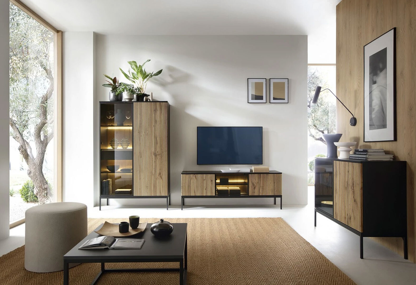 Изображение 1 - Тумба под ТВ с подсветкой Perfect Home Сенто / Sento RTV154 и витриной 153 см, черный / дуб вотан