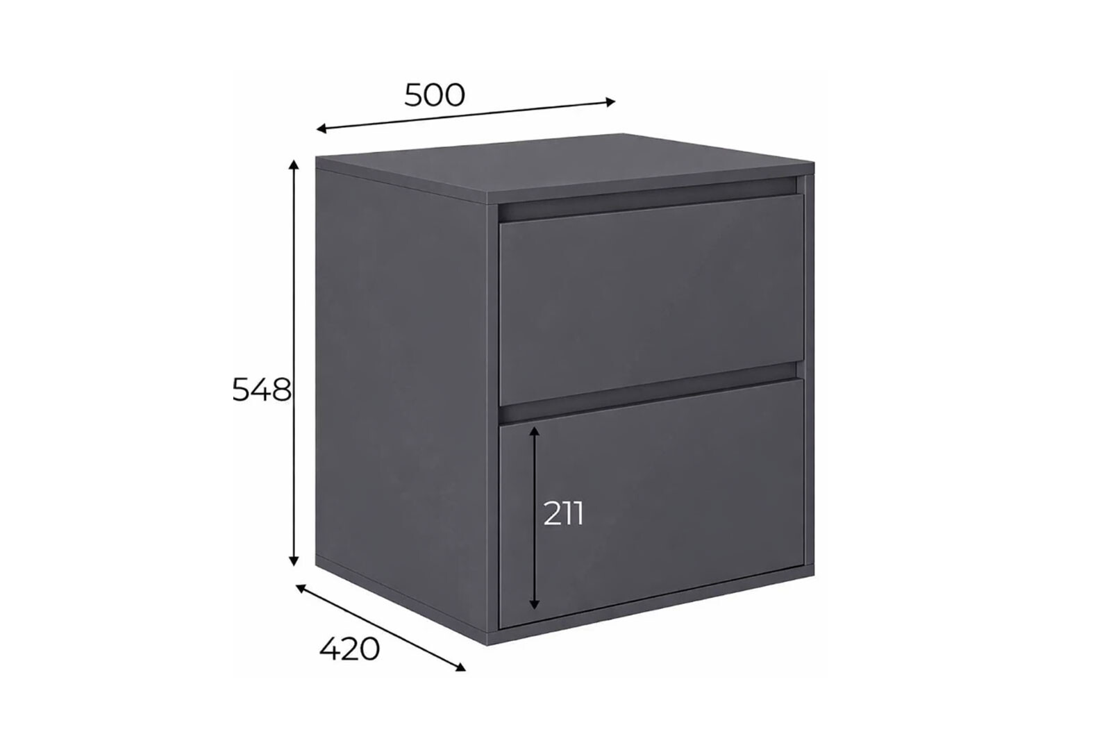 - Тумба прикроватная Art In Head Light / Лайт с 2 ящиками 50 см, графит