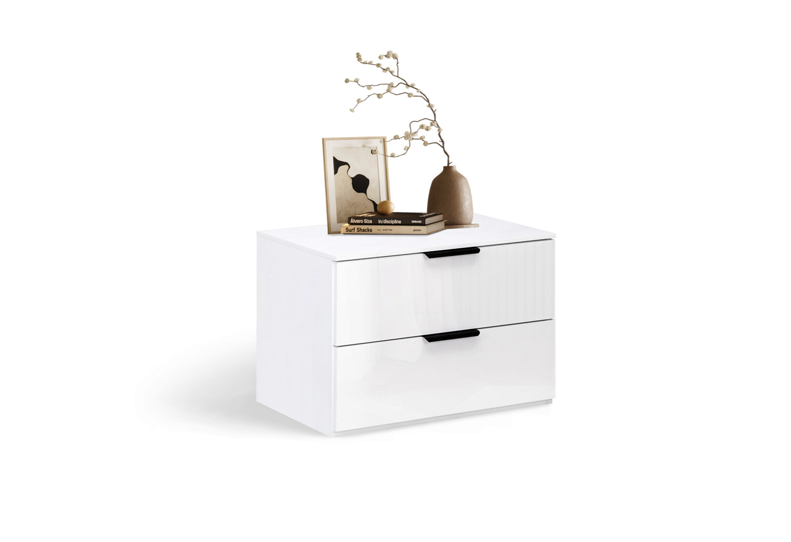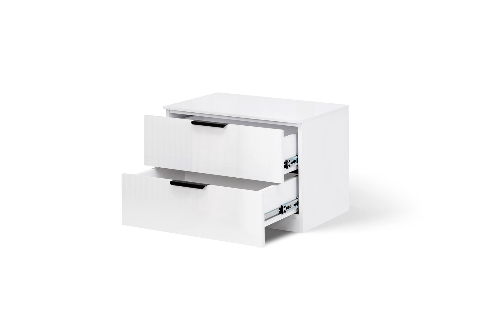 Тумба прикроватная МироМарк Мила с 2 ящиками 60 см белый глянец