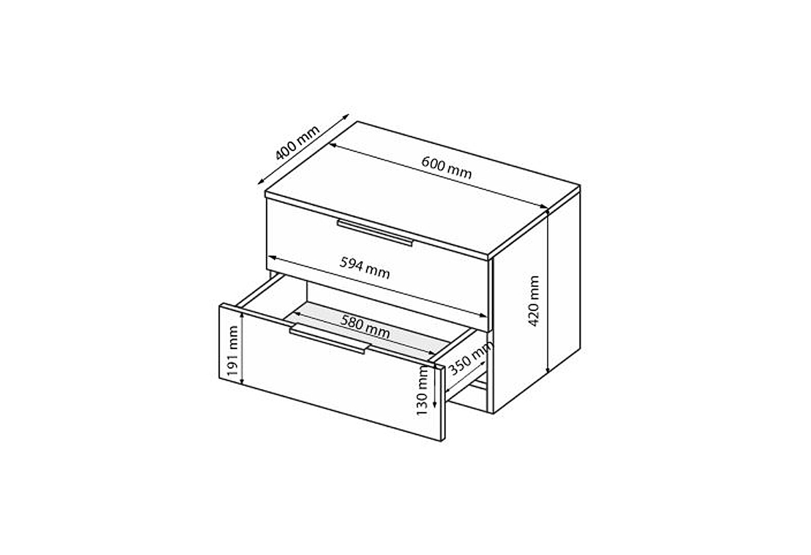- Тумба прикроватная МироМарк Мила с 2 ящиками 60 см белый глянец
