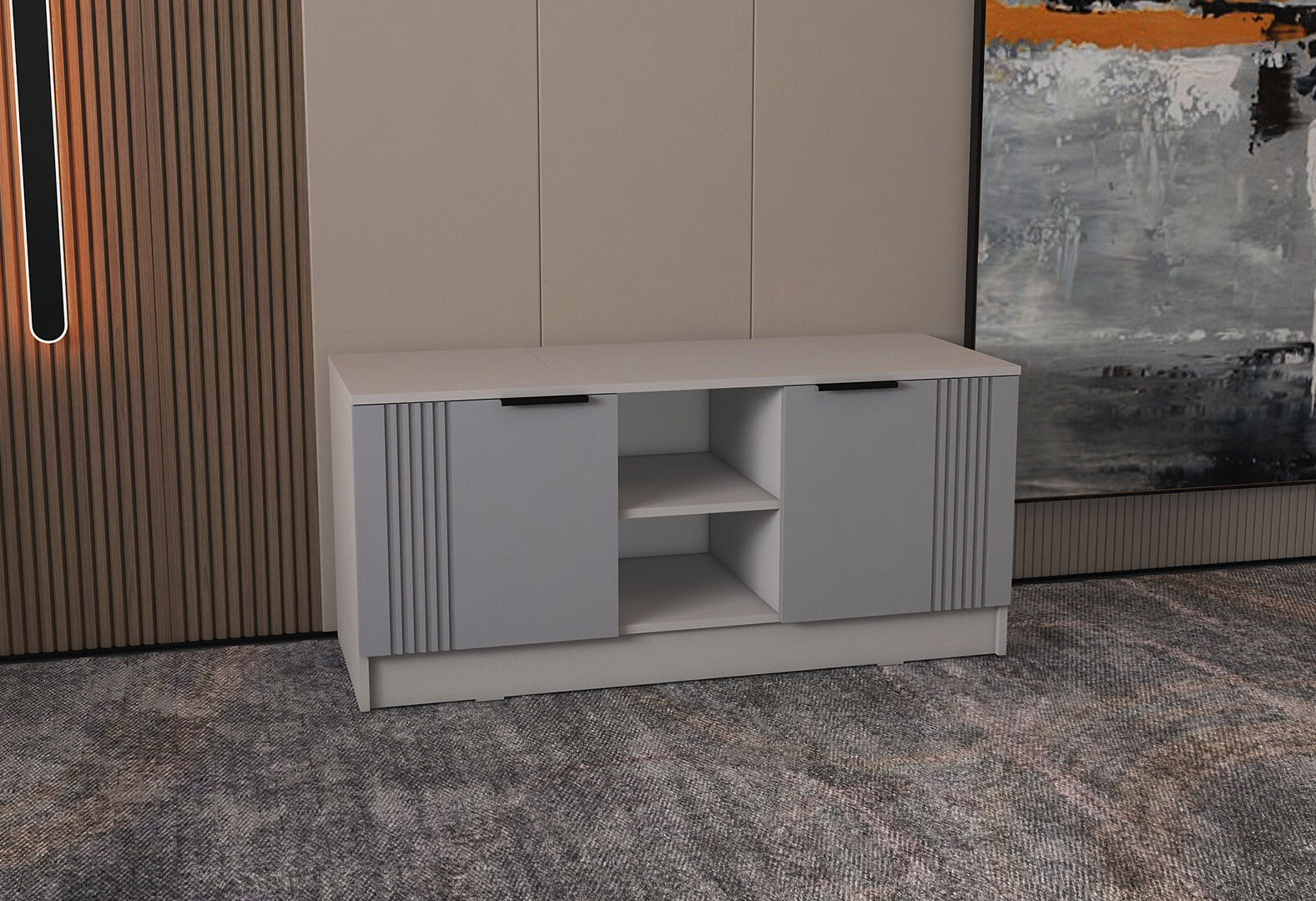 ТВ тумба Viant АРС ТВ-7 2-дверная с полками 140 см, серый / серый RAL 7004