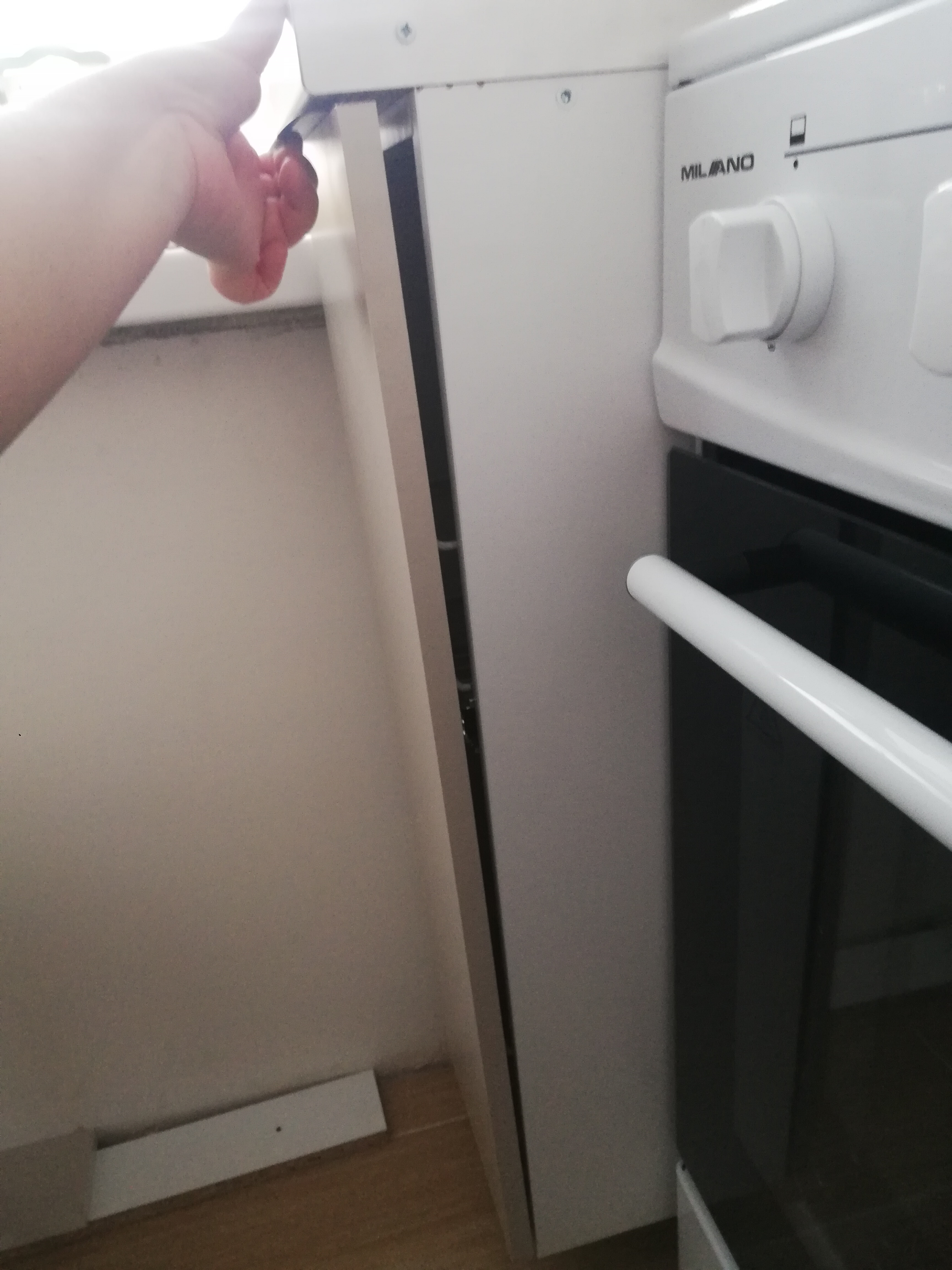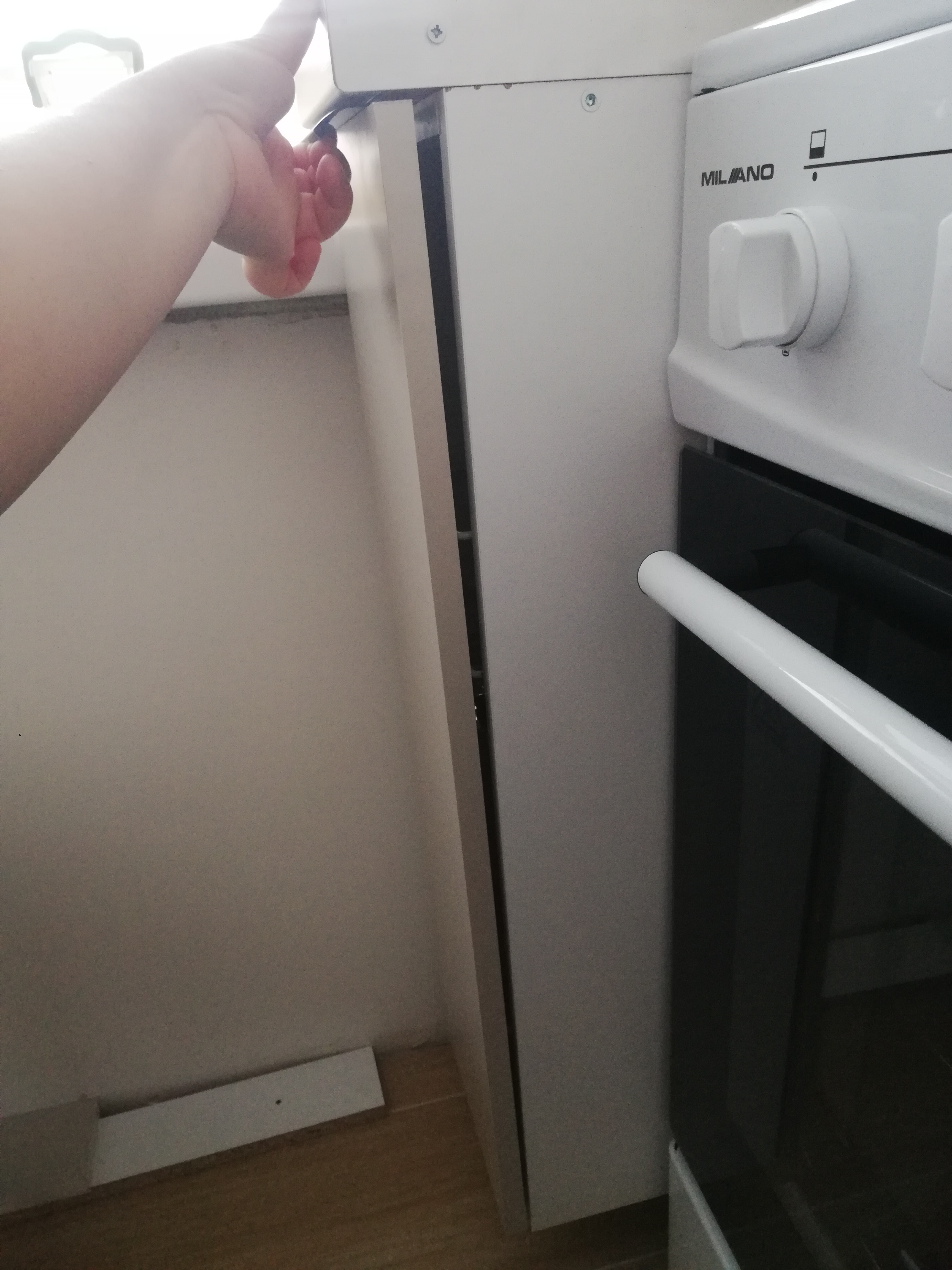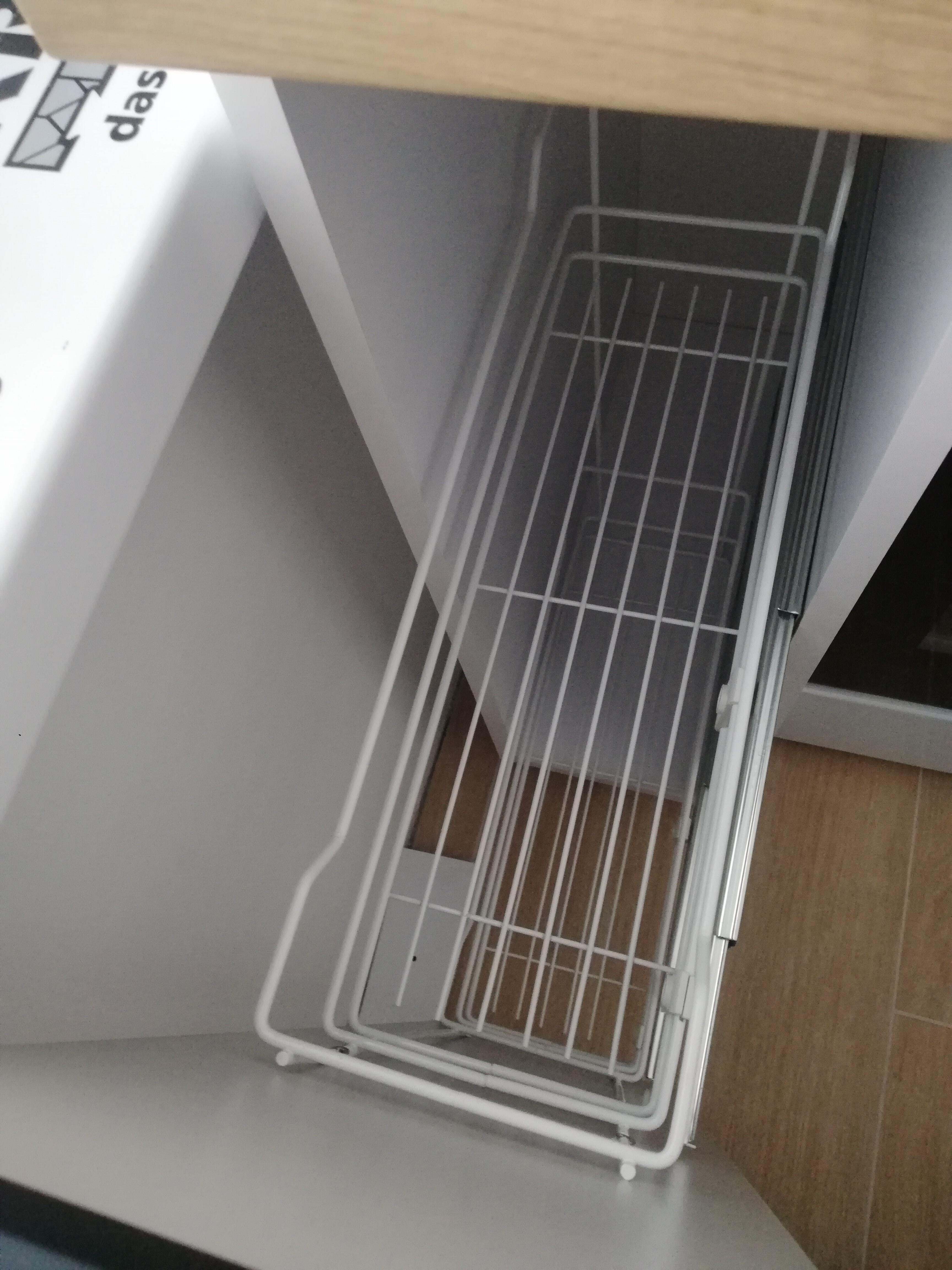 Телескопічна направляюча тільки з однієї сторони. Відповідно металева конструкція, яка кріпиться до цієї направляючої, при витягуванні гуляє в різні сторони. Ще один мінус, що коли ручка на дверцятах зверху, і ви тягнете двері на себе, щоб відкрити, то не одразу вся конструкція виїжджає, а просто відтягується верхня частина дверей, і тільки якщо продовжити тягнути далі, то виїде вся конструкція. Але з десяток таких витягувань, і або щось відірветься/деформується, або телескопічна направляюча полетить. А при закритті не повністю прилягає нижня частина дверцят. Як сказали майстри "дубка": А що ж ви хотіли за такі хороші. Це ж не за 5 тисяч.