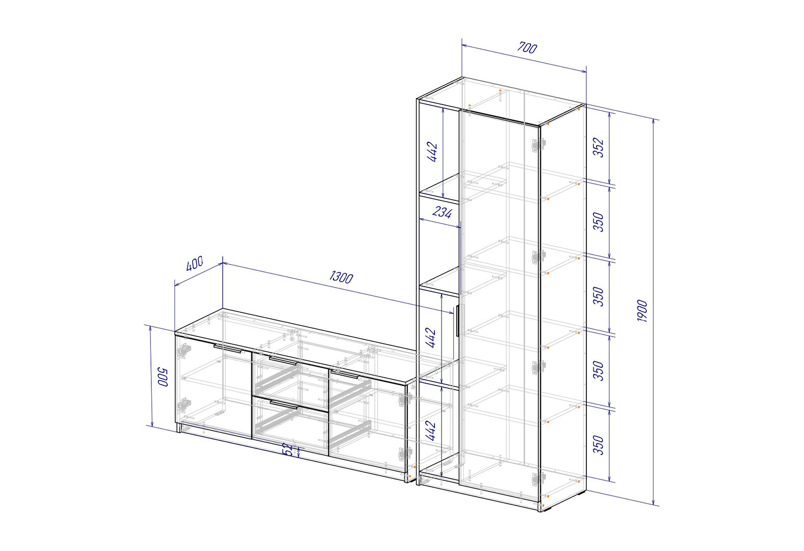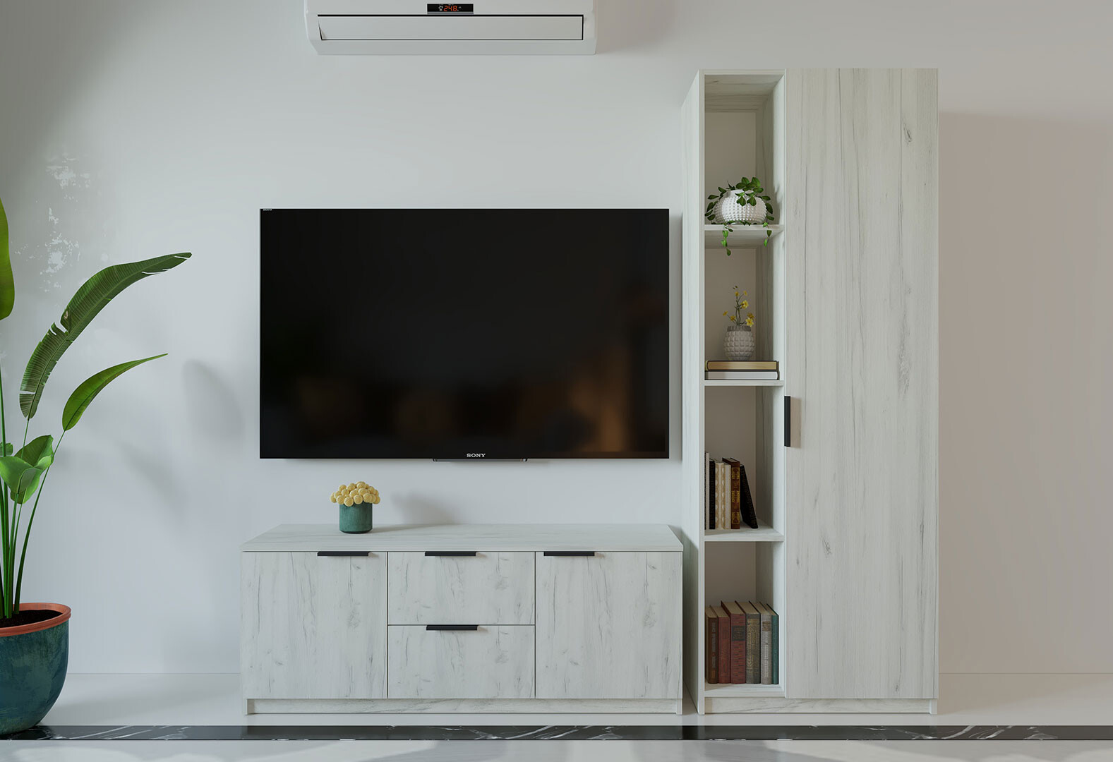 Гостиная Viant ВТ-4 с пеналом і стеллажом 200 см, дуб крафт белый