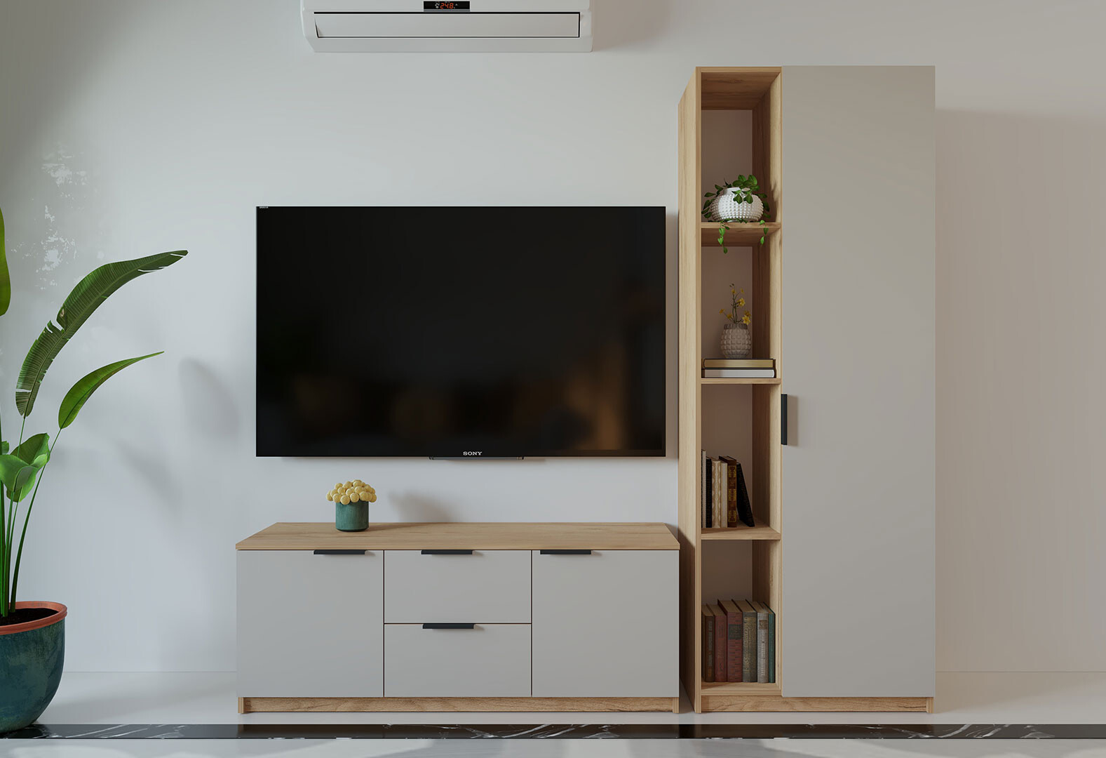 Гостиная Viant ВТ-4 с пеналом і стеллажом 200 см, дуб тахо / кашемир