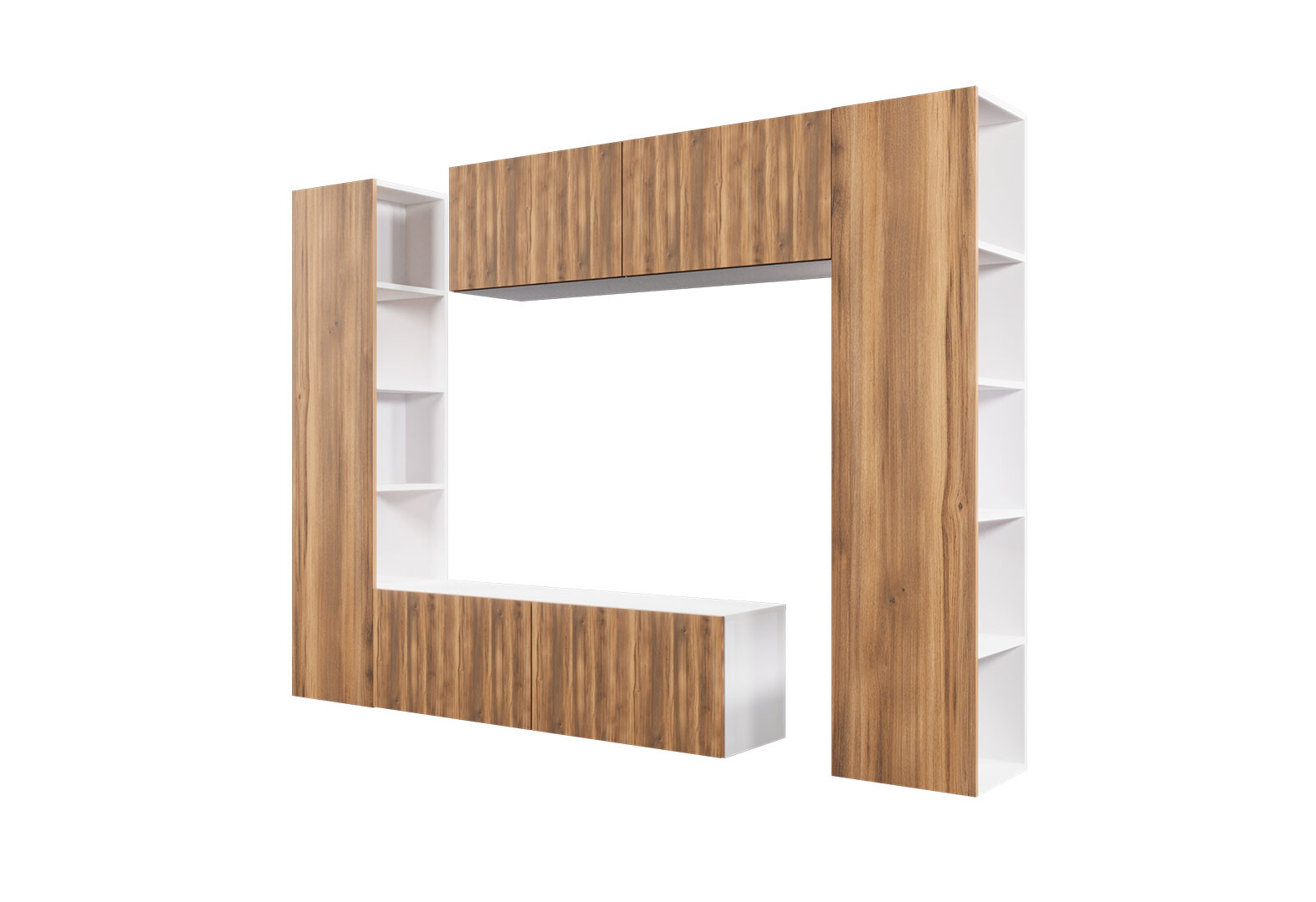 Гостиная Viant ВТ-1 с тумбой и пеналом с полками 220 см, белый / янтарь
