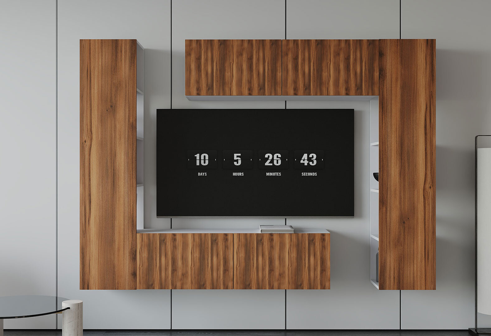 Изображение 4 - Гостиная Viant ВТ-1 с тумбой и пеналом с полками 220 см, белый / янтарь