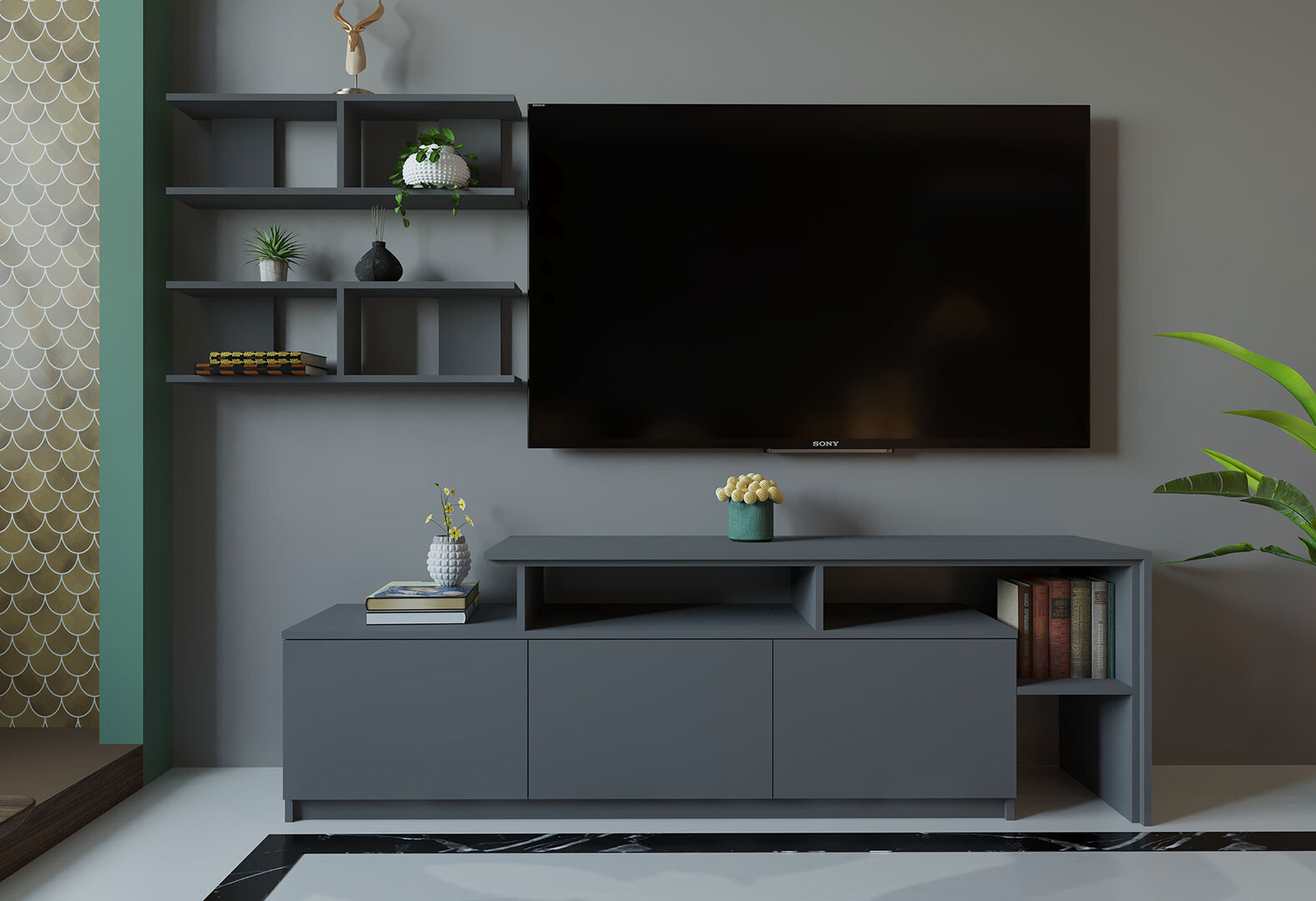 Гостиная Viant ВТ-5 с полками, тумба 180 см, антрацит