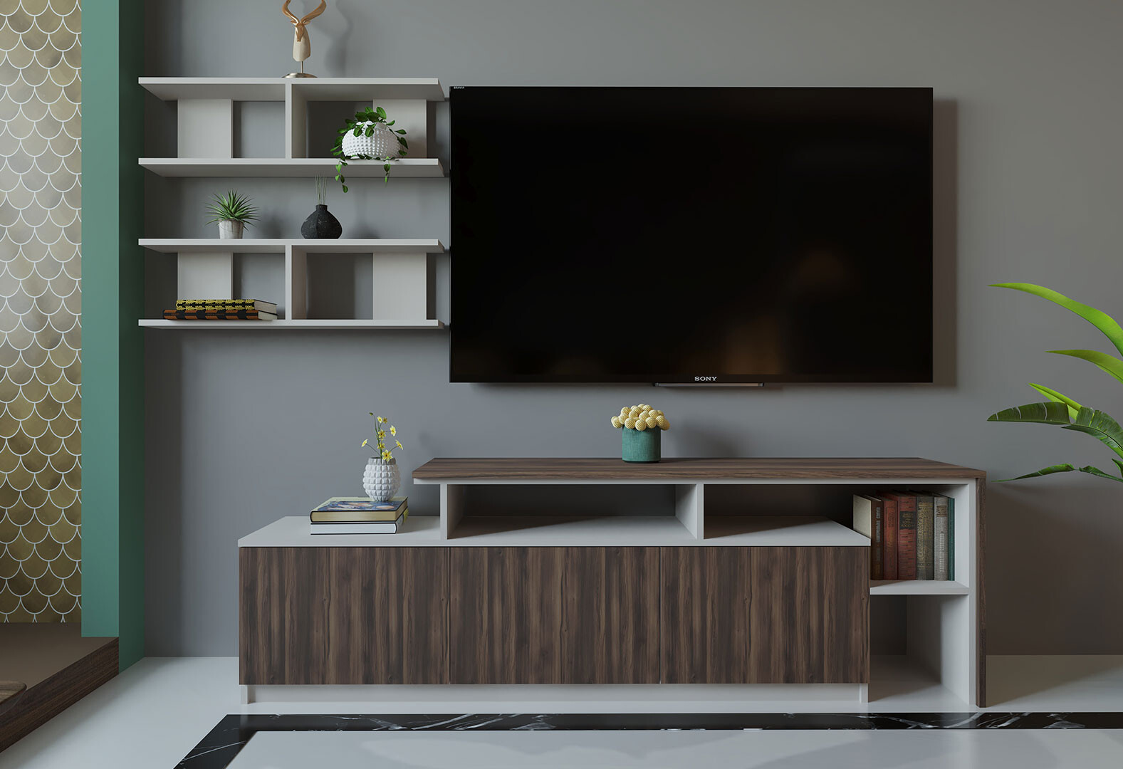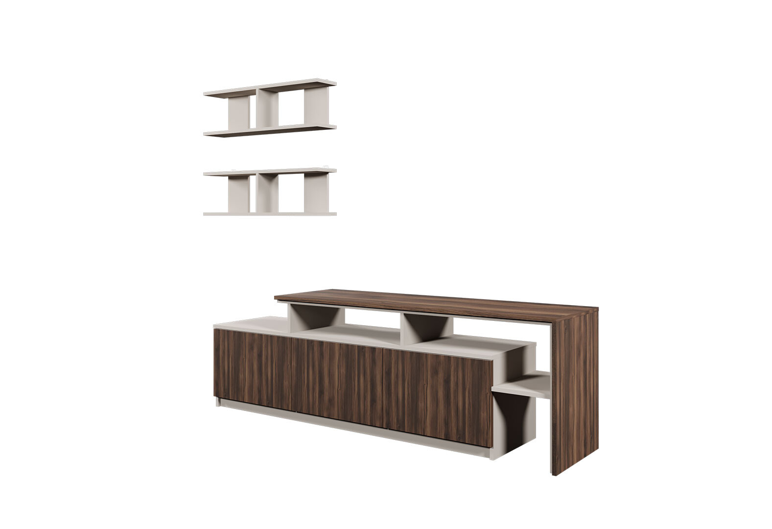 Гостиная Viant ВТ-5 с полками, тумба 180 см, белый / янтарь
