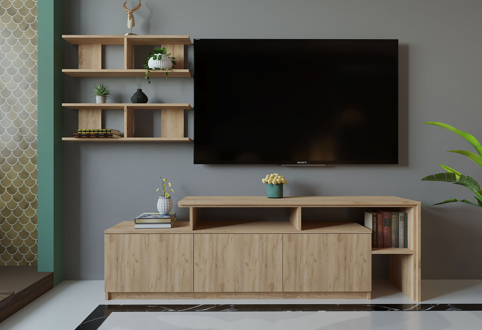 Гостиная Viant ВТ-5 с полками, тумба 180 см, дуб тахо