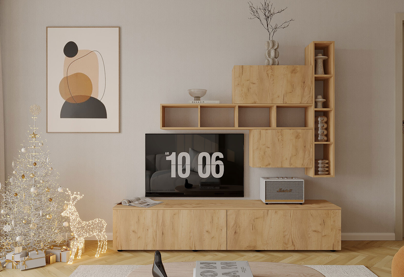 Гостиная Viant ВТ-6 с полками, тумба 180 см, дуб тахо