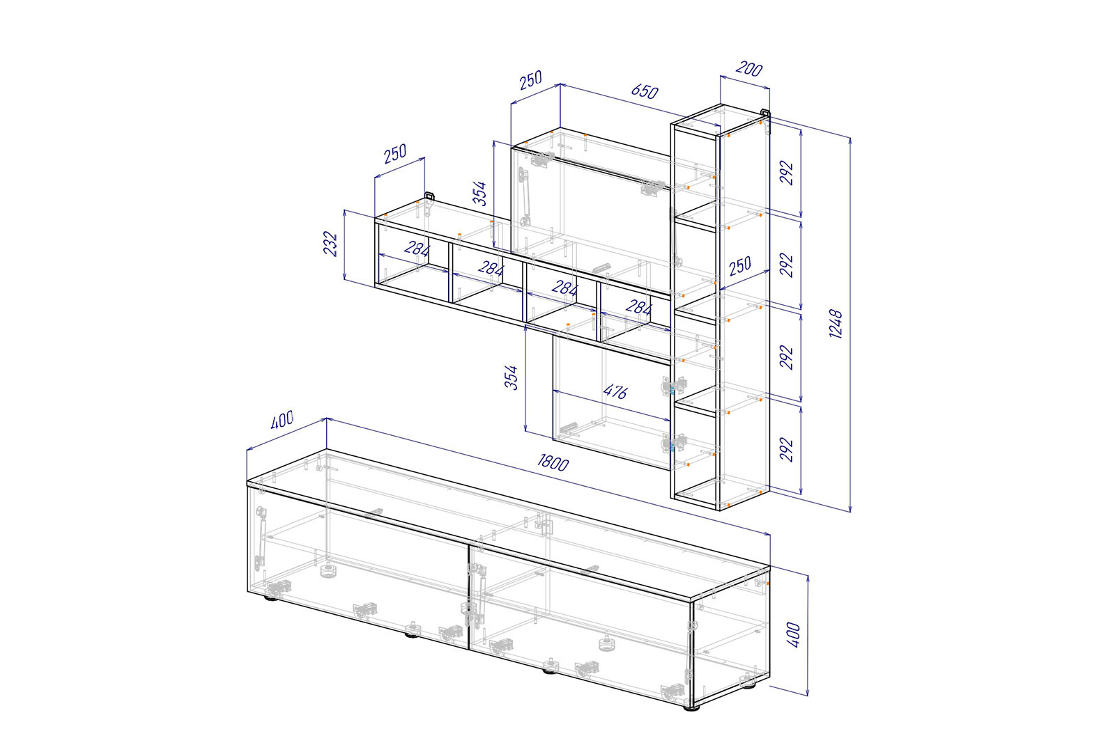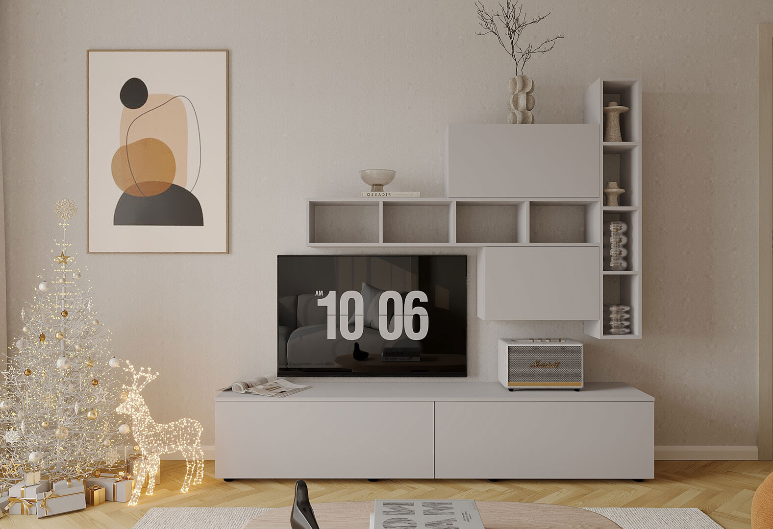 Гостиная Viant ВТ-6 с полками, тумба 180 см, серая