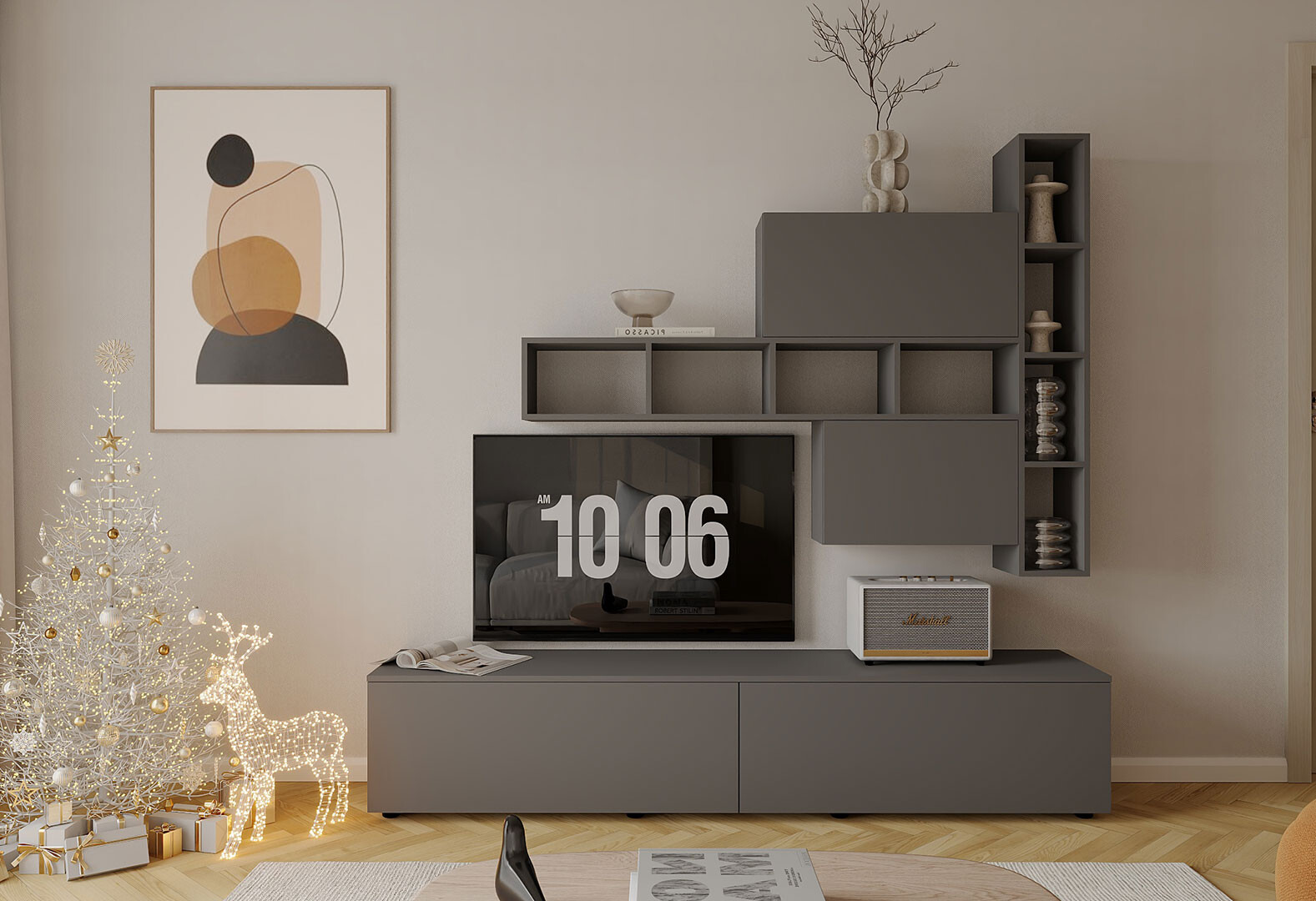 Гостиная Viant ВТ-6 с полками, тумба 200 см, антрацит
