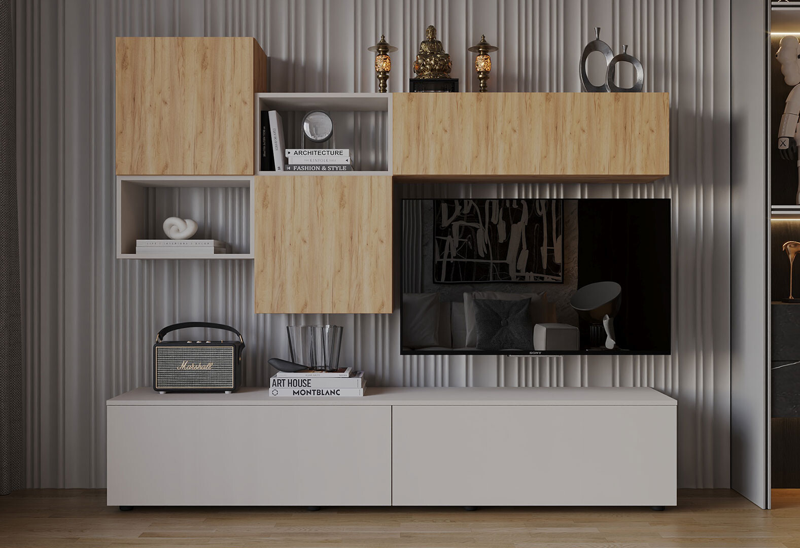 Гостиная Viant ВТ-9 с навесными полками 200 см, дуб тахо / кашемир