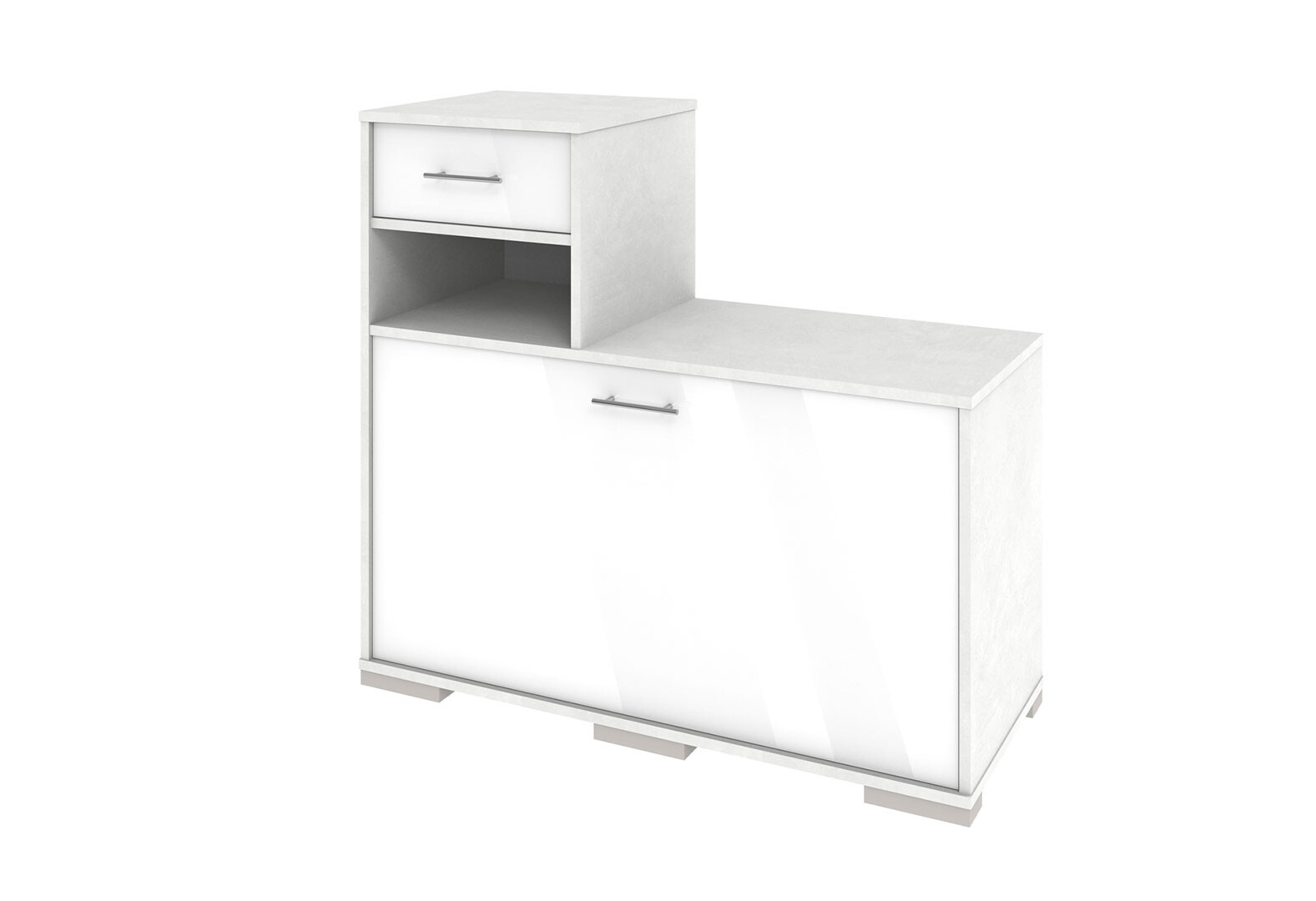 Обувная тумба Киевский стандарт Лиіра с ящиком 100 см бетон стайл / белый глянец