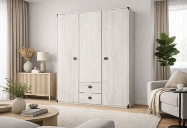- 160х200, Gerbor холдинг, рамочная МДФ, ламинированная ДСП, телескопические направляющие полного выдвижения, классические, с трёхдверным шкафом.