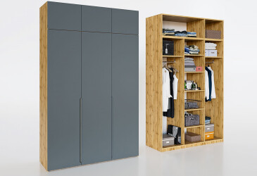 - VIP-master, фарбована МДФ, ДСП, петлі з дотягувачами, штанга і полиці, мінімалізм, дуб аппалачі / антрацит, 3D.