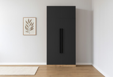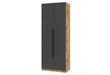 - Doros, ламінована ДСП, ламінована ДСП, телескопічні напрямні повного висуву, штанга, полиці та шухляди, мінімалізм, дуб артизан / графіт, 4D.