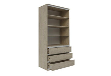- Київський стандарт, ламінована ДСП, скло, ламінована ДСП, телескопічні напрямні повного висуву, штанга, полиці та шухляди, сучасний, сосна натті, 2D.