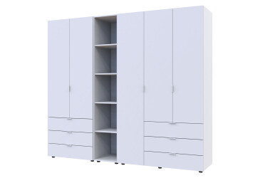 - Doros, ламінована ДСП, ламінована ДСП, роликові напрямні, штанга, полиці та шухляди, модерн, білий, 6D.