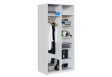 - MiroMark, глянцева ДСП, ламінована ДСП, телескопічні напрямні повного висуву, штанга, полиці та шухляди, мінімалізм, білий, 3D.