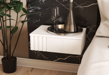 - MiroMark, глянцева ДСП, ламінована ДСП, телескопічні напрямні повного висуву, мінімалізм, білий, з 4 шухлядами.