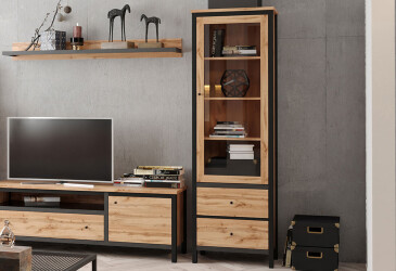 - в наявності, не входить в комплект, ВМК, ламінована ДСП, скло, ламінована ДСП, модерн, сосна аризонська / дуб корабельний.