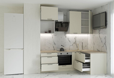 - новинка, MiroMark, фарбована МДФ, ДСП, фурнітура Blum, сучасний, напівмат слонова кістка, кутові.