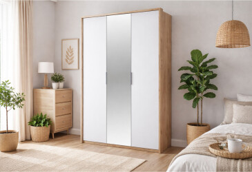 - MiroMark, глянцева ДСП, ламінована ДСП, штанга, модерн, дуб крафт / білий, 3D.