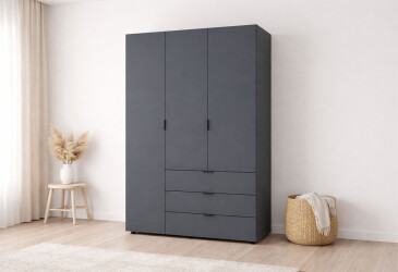 - в наявності, Doros, ламінована ДСП, ламінована ДСП, роликові напрямні, штанга, полиці та шухляди, модерн, графіт, 3D.