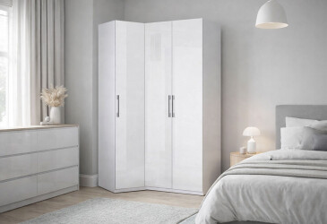 - MiroMark, глянцева ДСП, ламінована ДСП, штанга і шухляди, сучасний, білий, 3D, кутові.