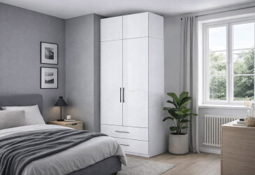 - MiroMark, глянцева ДСП, ламінована ДСП, штанга і шухляди, сучасний, білий, 2D.