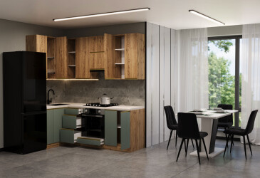 - VIP-master, шпонована ДСП 19 мм, фарбована МДФ 19 мм, ламінована ДСП, фурнітура Luxe, модерн, зелений матовий / дуб старий V, прямі.