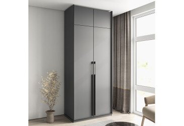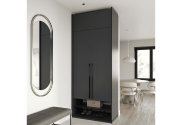 - Moreli, ламінована ДСП, ламінована ДСП, петлі з дотягувачами, регульовані ніжки, овальна чорна штанга, сучасний, антрацит, 2D.