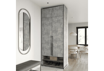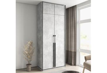 - Moreli, ламінована ДСП, ламінована ДСП, петлі з дотягувачами, регульовані ніжки, овальна чорна штанга, сучасний, бетон, 2D.