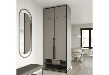 - Moreli, ламінована ДСП, ламінована ДСП, петлі з дотягувачами, регульовані ніжки, овальна чорна штанга, сучасний, кашемір, 2D.
