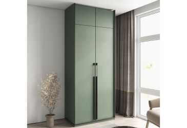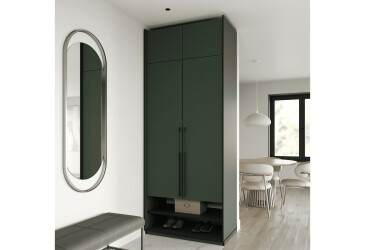 - Moreli, ламінована ДСП, ламінована ДСП, петлі з дотягувачами, регульовані ніжки, овальна чорна штанга, сучасний, зелений димчастий, 2D.