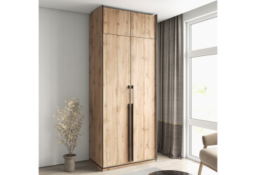 - Moreli, ламінована ДСП, ламінована ДСП, петлі з дотягувачами, регульовані ніжки, овальна чорна штанга, сучасний, дуб аппалачі, 2D.