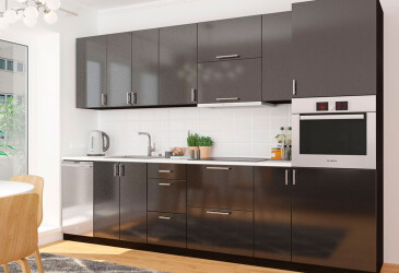 2. Доступність. Багатьох спонукає купити пряму кухню остаточна ціна готового гарнітура, яка на порядок нижче інших конфігурацій. Доступна вартість — це наслідок простоти виготовлення і менших витрат матеріалів.