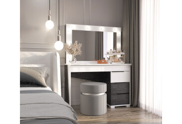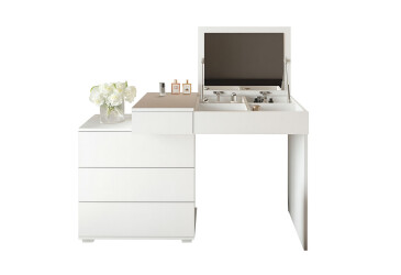 - дзеркало – один із важливих елементів. Без нього просто неможливо обійтися при нанесенні крему або декоративної косметики, а також створенні зачісок. Туалетний столик з дзеркалом позбавить необхідності купувати його окремо, підбираючи під сформований інтер'єр спальні. Воно може кріпитися до стіни, ховатися під відкидною кришкою або жорстко фіксуватися до корпусу;
