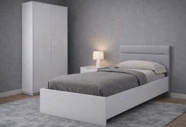 - 25 см, 140х200, без вкладу, без матраца, MiroMark, текстиль, ламінована ДСП, сучасний, білий, немає, звичайне.