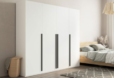 - MiroMark, глянцева ДСП, ламінована ДСП, телескопічні напрямні повного висуву, штанга, полиці та шухляди, мінімалізм, білий, 6D.
