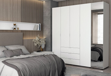 - Doros, ламінована ДСП, ламінована ДСП, роликові напрямні, штанга, полиці та шухляди, модерн, білий, 6D.